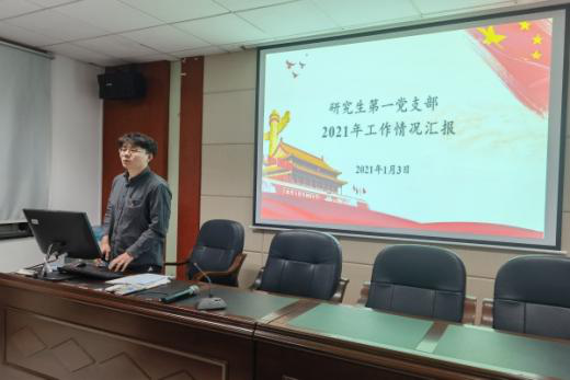 会议伊始,由党支部书记蔡明旭同志代表支委会向党员大会述职。蔡明旭同志从支部基本情况、以履行党建责任为要求,打造规范支部、以党史学习教育为抓手,打造特色支部以及未来努力方向等方面对研究生第一党支部2021年工作进行了总结。蔡明旭同志代表支委会述职结束后,支部党员和入党积极分子对党支部委员会的工作进行评议。支部成员表示了对蔡明旭同志的述职报告的高度赞同,并提到未来将继续支持支委会工作,积极学习知识,提高工作能力,为支部建设贡献自己的力量。