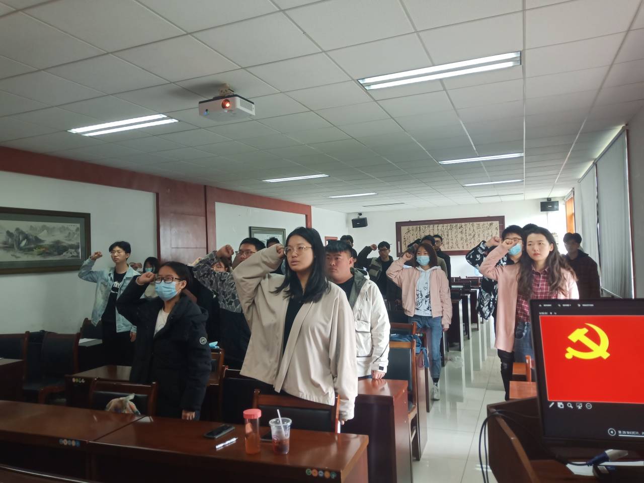 大会分为预备党员转正及支委选举两项议程。会议伊始,李嘉伟、季航、邹雯、黄昱辉、余晨五位同志依次宣读了转正申请书,对自己预备期内的思想、学习、工作、生活等情况进行了汇报,随后入党介绍人介绍其预备期一年来的各方面情况,支委会宣读考察意见,再由与会党员同志发表意见。会议讨论认为,五位同志在预备期内均在思想、学习、工作、生活等方面起到了模范带头作用,能够以党员标准严格要求自己,时刻牢记“为人民服务”的根本宗旨。讨论过后,支部正式党员进行无记名投票,同意以上五位同志如期转正,成为中共正式党员。全体党员同志在黄昱辉同志的领誓下,进行了庄严的入党宣誓。