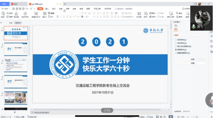 10月31日下午4点,交通院“薪火相传,接力前行”新老生线上交流会顺利举行。交通院2021级辅导员张健老师、王羽珊老师,部分本科20级、21级学生参加本次会议。本次会议邀请了交运1802班游弋、交运T1801班杨嘉钰和交运2002班齐萌三位在不同领域大放异彩的优秀学子向大家分享经验。本次会议由2104班陈镜茹同学主持。