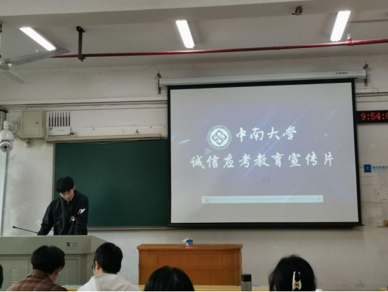 班会中,各班班长首先向大家播放了中南大学诚信应考宣传片,并认真解释了学校对于严肃考风考纪的各项政策,传达了关于考试安排程序、考试管理、补考重修等各种问题,并结合宣传片中出现的几种违纪现象以及惩处方法告诫同学们要严肃认真对待考试,诚实守信做人。同时集体学习了《中南大学学生考试规则》《中南大学学生纪律处分条例》等有关制度文件,结合案例做好警示教育。随后,同学们积极地在《诚信承诺书》上签字,表达了同学们诚信考试的决心和信心。