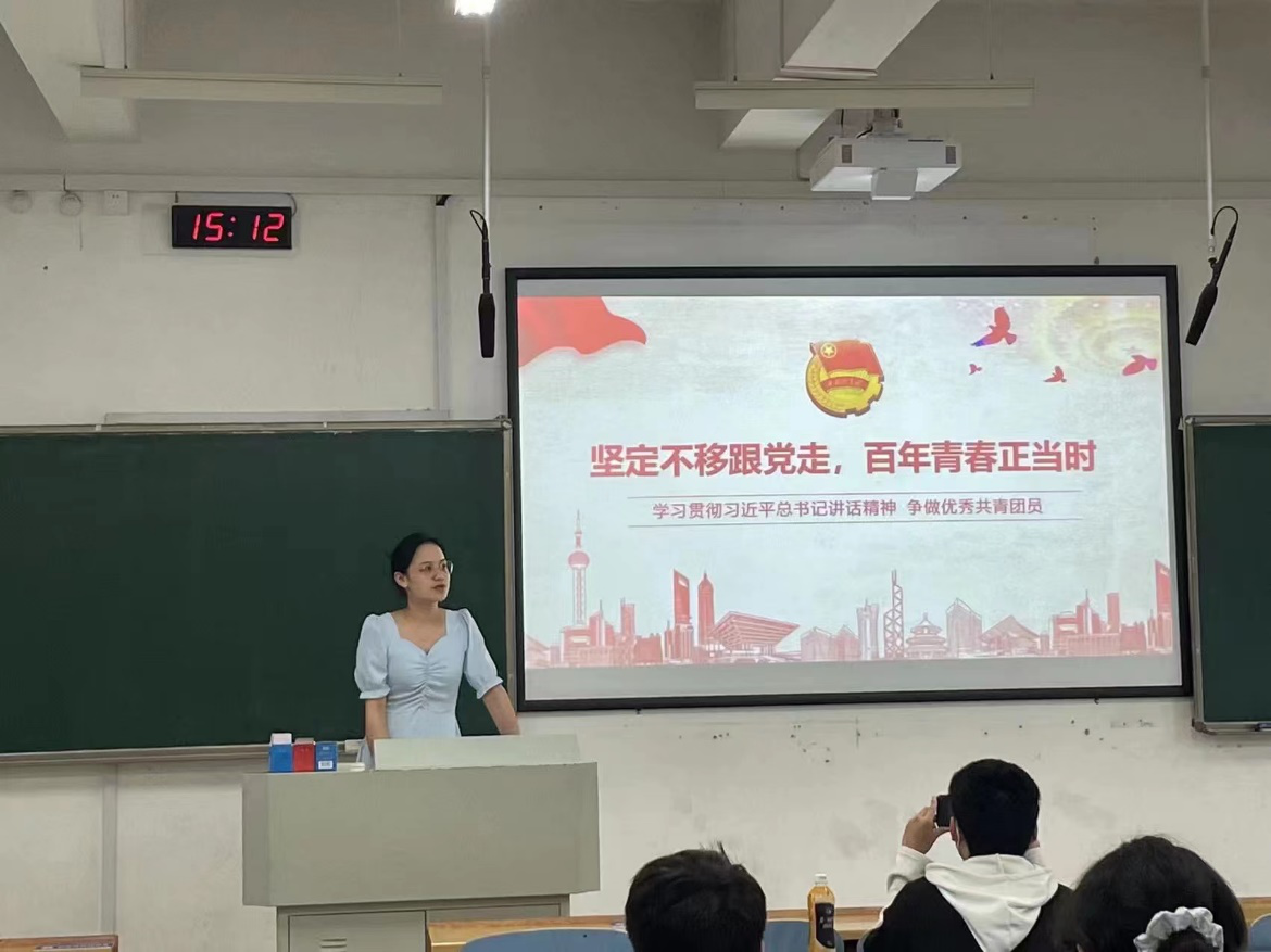 5月22日下午,三个团支部以“线下参与+线上直播”结合的方式共上一堂团课,本次团课邀请了外国语电子竞技博彩 团委书记李雅丽老师作为主讲,李老师带领大家学习了《习近平总书记在庆祝中国共青团成立100周年大会上的重要讲话》,鼓励团员们争做新时代敢作敢为的优秀青年。此外,团员们还一同分享了优秀共青团员的光辉事迹,并重温了入团誓词。一声声铿锵有力的誓言表达了团员们作为中国特色社会主义建设者和接班人树立远大理想,不忘初心,接续奋斗的决心。