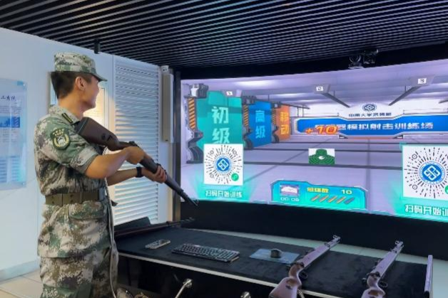 9月14日下午三点,同学们在毓秀楼集合,在团支书的带领下前往国防教育室。在讲解员精彩的讲解下,同学们了解了近代、当代国防的发展振兴和中国武装力量的建设成就。在观看“中南大学的国防成就”后,支部同学们深切感受到学校和祖国发展同频共振,自豪感油然而生。讲解完毕,同学们自由参观了拓展学习区。栩栩如生的武器模型和相关的电子资料介绍让同学们对国防科技有了更进一步的了解。最后一个环节是射击体验,同学们通过现代化科技,身临其境地感受到军人们在战场上面对的险象环生的境况和激情勇猛的身姿。