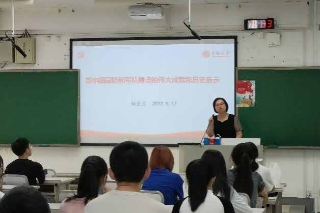 9月17日下午三点,马克思主义电子竞技博彩 杨金月老师于A311教室就“新中国国防和军队建设的伟大成就和历史启示”为团支部成员进行授课。杨老师讲解到,中国国防和军队建设取得了“建成了诸军兵种合成的强大军队”“构建了中国特色的武器装备体系”等五大伟大成就,由此得出 “始终坚持党对军队的绝对领导”“不断创新党的军事指导理论坚持与时俱进”和“不断改革创新处理好经济建设和国防建设的关系”的历史启示。同学们纷纷表示应不断从伟大成就中汲取历史智慧,坚定远大之志、砥砺担当之勇,以更加坚定的信心、更加顽强的意志奋力实现既定目标。