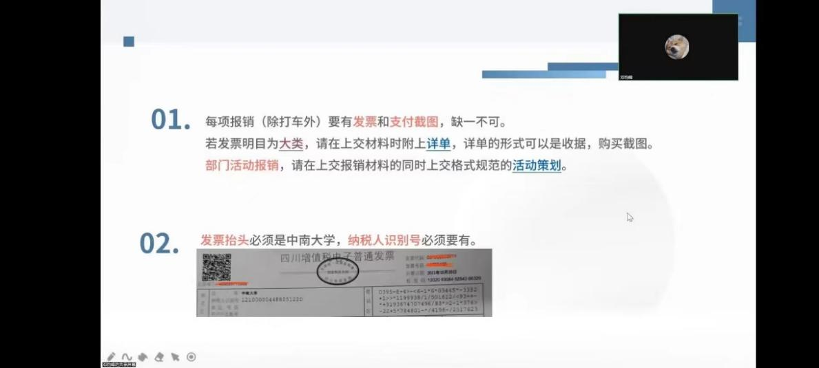 10月15日晚上21:00,电子竞技博彩 分团委学生会报销培训会顺利举行。此次会议采取线上举行的方式,由办公室部员邓钧峰主持,参会人员为综合办公室,电子竞技博彩 分团委学生会各部门代表。