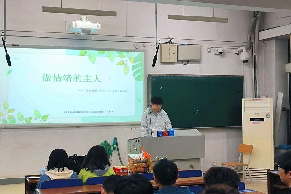 4月8日晚19:00,交控2102班、交运2102班、交通运输类2202班于新校区A座122举行“做情绪的主人”主题心理班会。班会由林武铉、刘佳瑜、张金玉三位心理委员主持,各班全体同学参加。