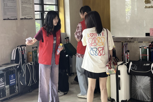 活动伊始,志愿者协会的成员与橘子洲的工作人员积极沟通,确定了活动时间、地点,并进行了小组分工。所有成员共分为两组,一组同学经过短暂培训后,在游客中心帮助游客解决问路、寄存个人物品、登记信息等问题,另一组同学则前往入园必经的闸机口,协助安保人员维护入园秩序。