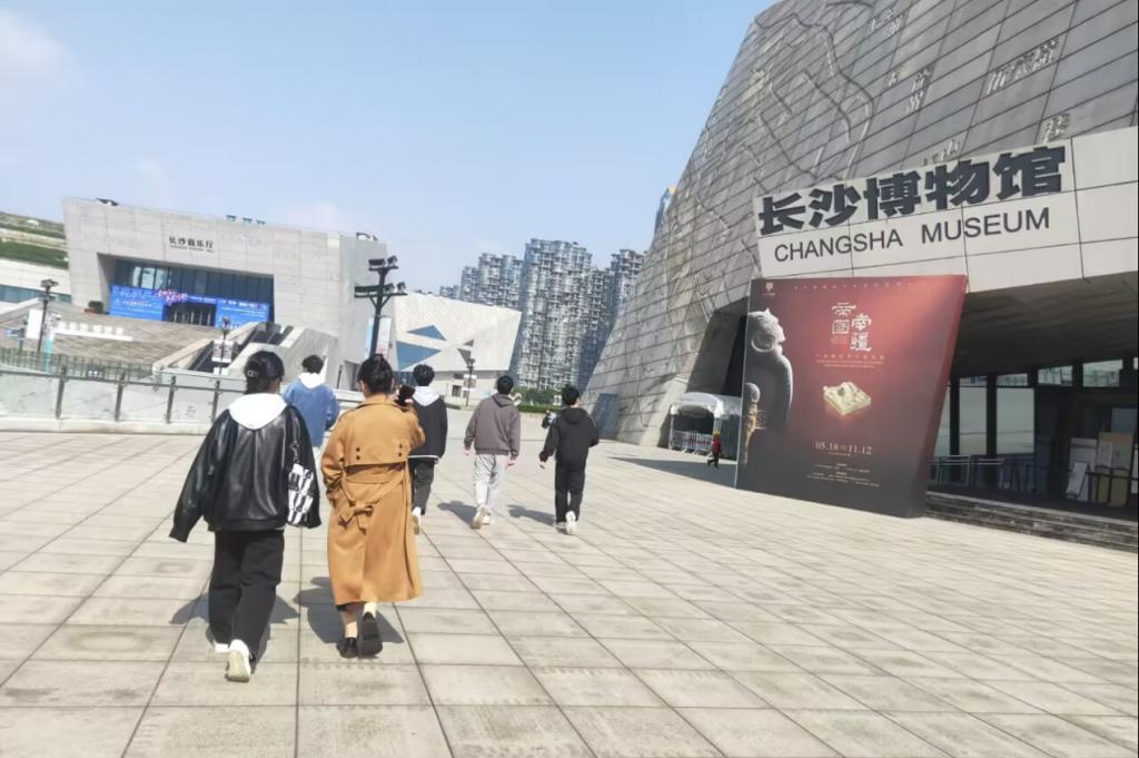 参观开始前,全体同学分为五组,并推荐出五位小组长。活动期间,各小组长依据团支书提供的参考地点选择各小组的目的地,分别前往长沙博物馆、长沙规划展示馆、长沙图书馆、长沙音乐厅、中国共产党长沙历史馆、橘子洲、万家丽蜡像馆、马栏山视频文创园等地进行参观学习。