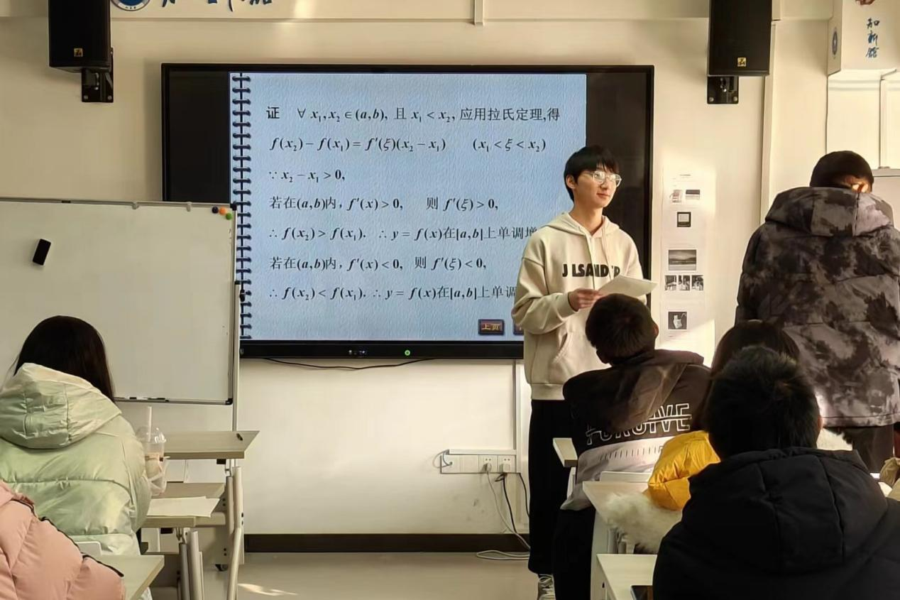 12月23日16:00,刘嘉浩同学于知新馆团辅A室为同学们详细讲解了微分中值定理等重点公式。考虑问题的难易等级和在场同学接受程度,刘嘉浩同学结合画图软件工具,基于课本习题探究解题方法,运用深入浅出的语言逐字解读定理。通过课程讲解,在座的同学面对相关难题时均豁然开朗。