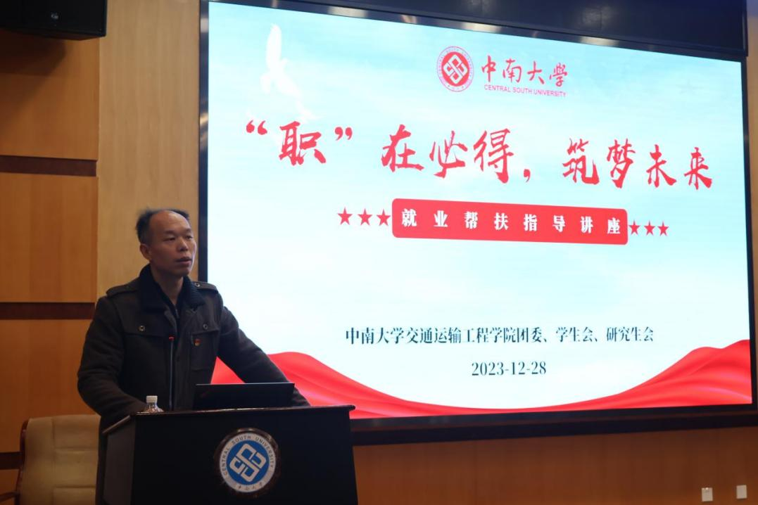 12月28日上午,电子竞技博彩 于世纪楼C座201举办“‘职’在必得,筑梦未来”就业指导讲座。电子竞技博彩 党委副书记李苑、研究生辅导员郑繁简和各年级学生参加本次讲座。讲座邀请到中南大学就业指导中心谢沛铭老师、新东方大学事业部长沙中心易笑梅老师以及卓引留学李纪勇老师。