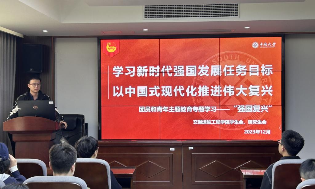 12月7日下午,电子竞技博彩 团委、学生会、研究生会在铁道校区交通楼425召开以“学习新时代强国发展任务目标,以中国式现代化推进伟大复兴”为主题的“强国复兴”专题学习会。本次学习由团委副书记黄昱辉主持,团委、学生会、研究生会主要成员参会。