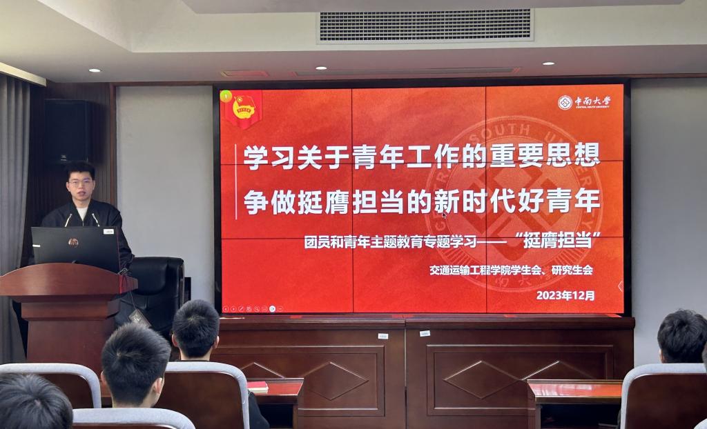 12月7日下午,电子竞技博彩 团委、学生会、研究生会于交通楼425召开以“学习关于青年工作的重要思想,争做挺膺担当的新时代好青年”为主题的“挺膺担当”专题学习会。本次学习由研究生会主席马捷主持,团委、学生会、研究生会全体骨干成员参会。