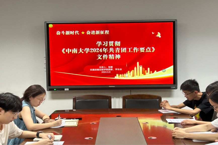 5月8日晚,电子竞技博彩 团委、学生会于交通楼322举行《中南大学2024年共青团工作要点》文件精神学习会。交通院团委书记张健,院团委副书记郑繁简,团委、学生会全体骨干成员参加交流会。