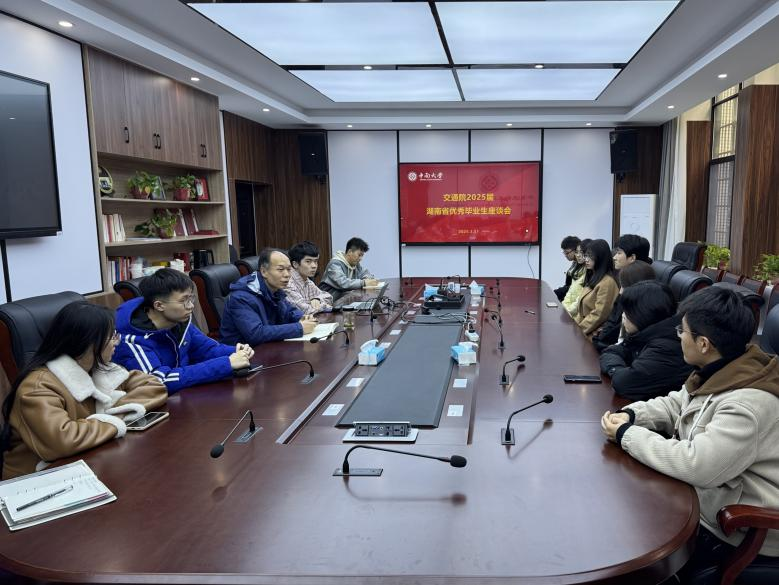 3月11日下午,电子竞技博彩 2025届湖南省优秀毕业生座谈会于交通楼119举行。电子竞技博彩 党委副书记李苑,2021级辅导员张健老师以及交通院2025届湖南省优秀毕业生参加本次会议。