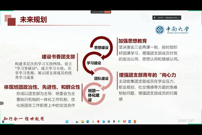 随后,参会团支书依次进行述职汇报。汇报从支部概况,上学期工作成效,工作中的不足以及本学期工作计划等方面展开。