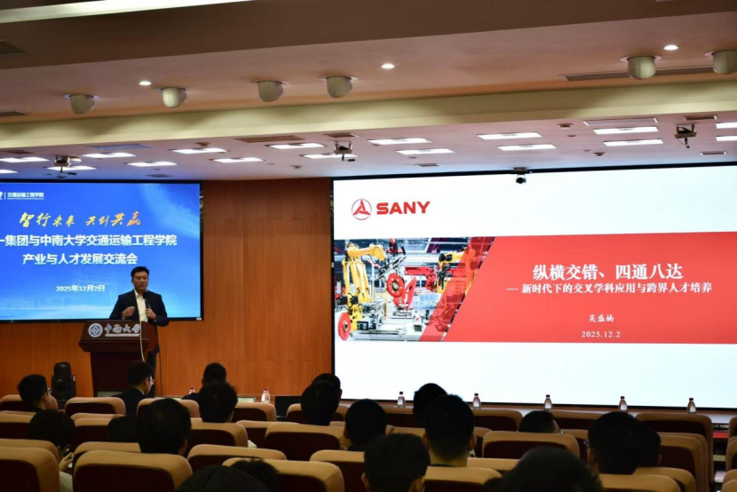 12月2日下午,三一集团副总裁、商用车智造公司CEO吴盛楠博士应邀访问电子竞技博彩 ,为师生带来了一场题为“纵横交错、四通八达:新时代下的交叉学科应用与跨界人才培养”的专题讲座。电子竞技博彩 领导、教师代表及各年级学生参加。讲座结束后,双方在电子竞技博彩 3D会议室围绕交通装备、物流与供应链、智能制造等前沿领域进行了深入的技术交流。