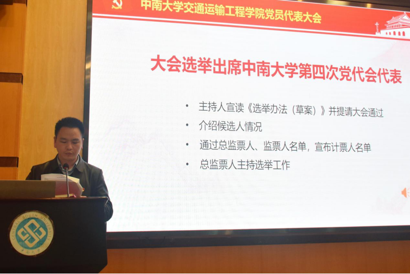 经过严肃公正的统票环节后,总监票人向大会报告的计票结果,本次大会最终选举出席中南大学第四次党代会代表为:黄健陵、贺志军、宋晓东、高广军、鲁寨军、邹杨华、蔡明旭。