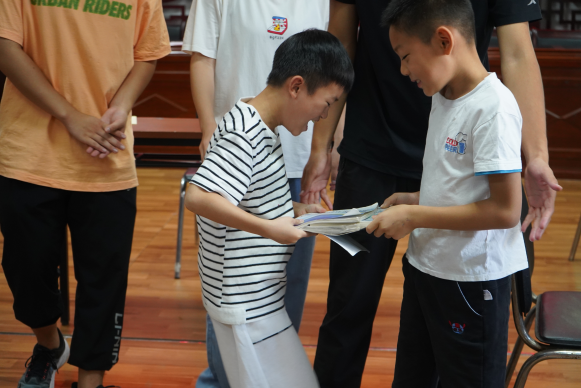 将两本书叠放,和伙伴尝试用力去拉,从中亲身感受摩擦力,这是实践团成员罗旭为小朋友们讲解的实验。这次实验,采用边讲边做的形式,小朋友们跟着罗旭同学一起进行实验。将书本叠加,在进行三次不同程度叠加的实验之后,罗旭同学为大家引入摩擦力的概念,解开书本拉不开的背后的秘密。