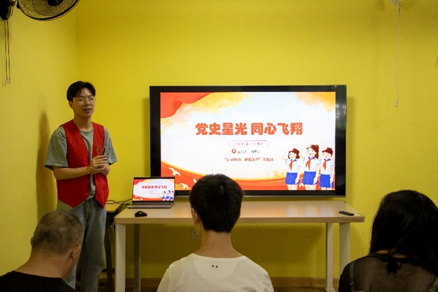 为推进助残志愿服务创新与发展,实践团成员以主题课程讲授、社会技能培训、烹饪技能训练、手工制作教学等活动为抓手,为残疾人带来获得感、幸福感的持续提升。其中,授课主题涵盖红色精神、安全常识等方面,既体现大学生党员实践团的特色,又切实满足残障人士的需求。在红色精神的课堂上,刘宇杰同学以“党的生日”作为切入口,结合《那年那兔那些事》动画影片,向学员们徐徐道来党在百年历程中的峥嵘岁月,帮助他们树立正确的价值观与家国情怀。
