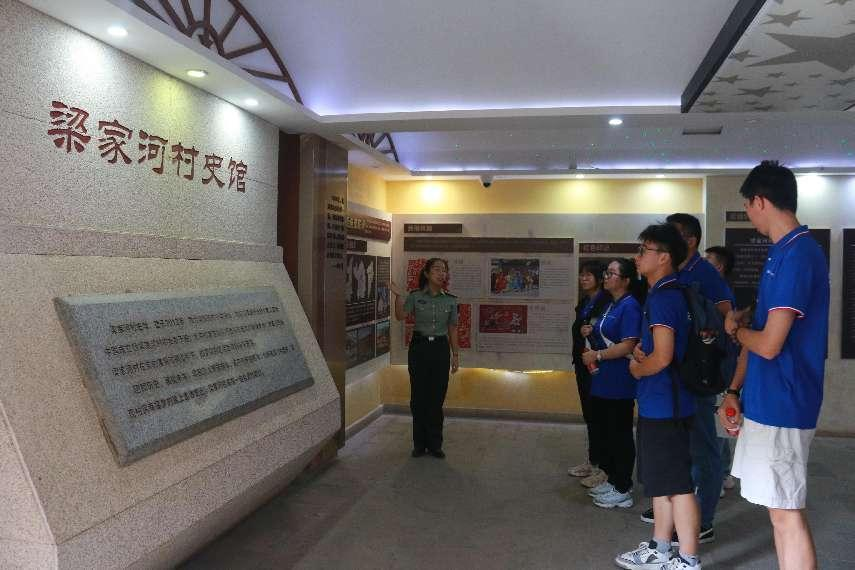 图 实践队员们在梁家河村史馆中聆听讲解员的讲说