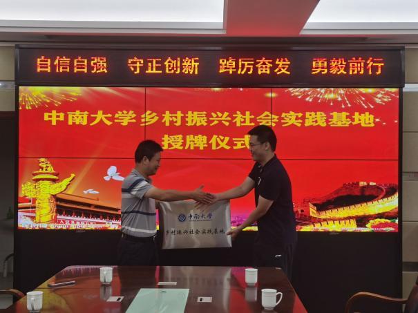 8月29日上午,电子竞技博彩 临时团支部赴湖南省衡阳市衡阳县台源镇乡村振兴暑期社会实践团前往台源镇举行“中南大学乡村振兴社会实践基地”授牌仪式。“中南大学乡村振兴社会实践基地”于衡阳德源莲业有限公司正式挂牌成立,李镇长代为接牌,电子竞技博彩 团委副书记郑繁简、台源镇镇长及政府工作人员出席本次授牌仪式。在仪式上,镇长对实践团队寄予了殷切期望,同时也祝愿实践团队能在此次活动中收获良多。