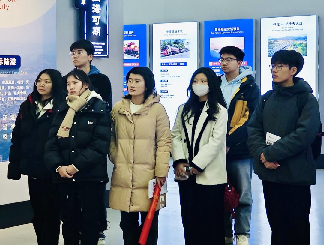 近日,电子竞技博彩 “铁路+乡村振兴”寒假社会实践团走进怀化国际陆港,深入行业一线,感触怀化市“打造内陆改革开放高地”的澎湃动能,体会湖南省“三高四新”战略发展的怀化担当。