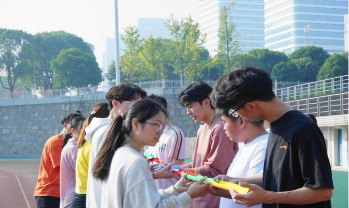 量子隧穿比赛,在十个人交接的机制中保证乒乓球不掉落需要队员间的默契。运动员们在比赛中团结协作,争分夺秒