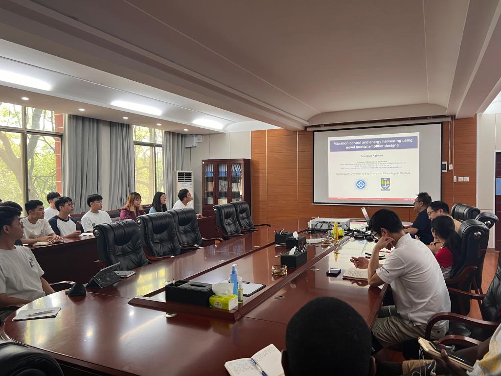 :Sondipon Adhikari教授在高速列车研究中心北楼201会议室做《采用新型惯性放大器设计的振动控制和能量收集》主题报告。报告中Sondipon Adhikari教授首先介绍了传统的惯性放大器,随后提出并分析了新形式的惯性放大器设计的结构与特点,最后通过分析基础机构的动力学,以封闭形式导出了所有放大器的质量和刚度放大因子。基于解析表达式,解析获得了最佳放大的参数选择。数值结果表明,实现几个数量级的质量和刚度放大是可能的。报告中提出和设计的惯性放大器将提供更高的有效质量和刚度,使得利用基础振荡系统的共振频率能力得到的被动振动控制效果更优越。