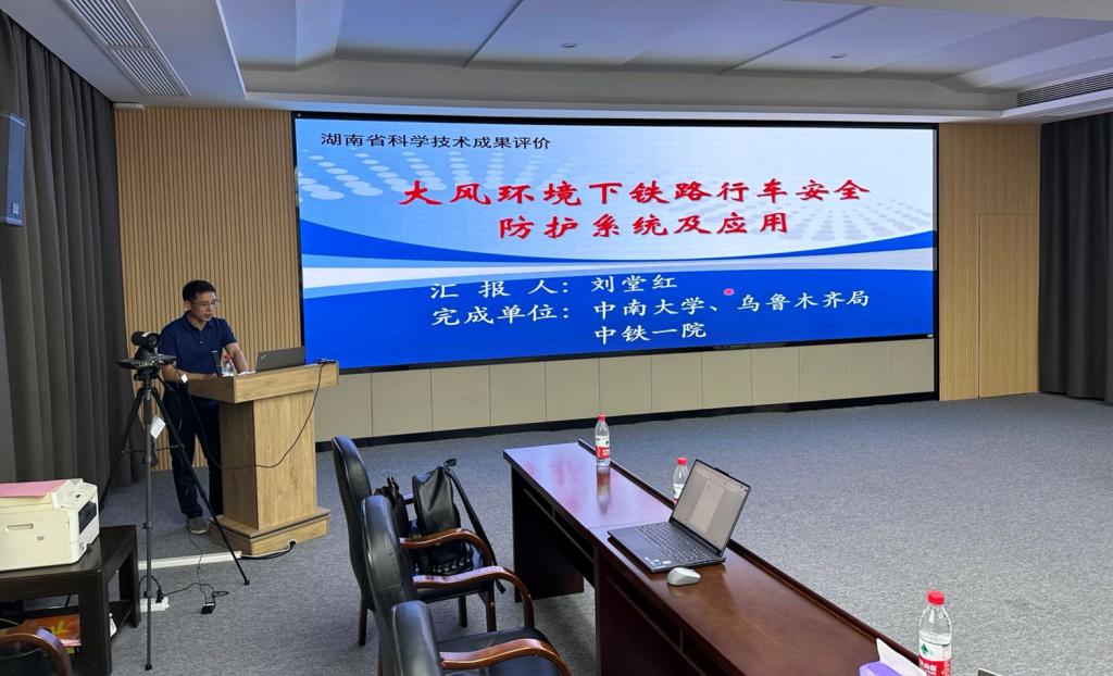 据陈晓栋报:2023年8月28日,在中南大学铁道校区高速列车研究中心3D会议室召开了“大风环境下铁路行车安全防护系统及应用”科技成果评价会。成果评价单位为湖南省科学技术信息研究所。参会的评审专家有中车株洲电力机车有限公司刘友梅院士、中车青岛四方机车车辆股份有限公司丁叁叁正高级工程师、国防科技大学易仕和教授、中国铁路南昌局集团有限公司何志勇正高级工程师、中车株洲电力机车研究所有限公司刘群欣正高级工程师、中南大学李启厚、贺志军、梁习锋、刘堂红、葛盛昌、张洁、周伟参会。 会议由中南大学科研部部长李启厚主持,由刘堂红进行项目汇报,后接收了刘友梅院士担任组长的专家组质询、项目组答疑、专家讨论、独立评分、出具专家评价结论,汇总评价评分,专家签字等环节,最终形成评价结论:专家一致认为,大风环境下铁路行车安全防护系统及应用成果整体达到国际先进水平,其中构建的大风环境下列车气动载荷获取方法及广域载荷谱、大风环境下行车安全综合判定方法达到国际领先水平。
