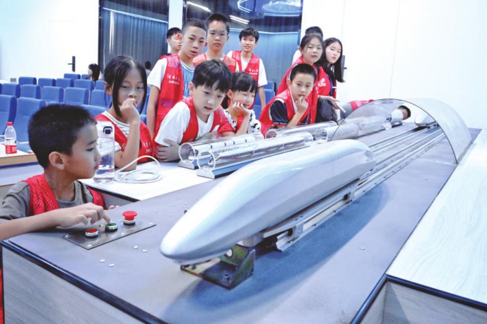 湖南湘江新区麓谷赫英小学肖辰希:在中南大学轨道交通科普基地,我不仅了解了列车发展历程,观看了列车模型穿越隧道、交会和模拟碰撞的过程,还听到了科学家们开展铁路自主创新工作背后的艰难探索历程。正是我们广大的铁路工作人员自立自强,不断探索试验,一代又一代人攻坚克难接续,才跑出了世界领先的飞驰速度。你看,车车的学问,“慢”也能成就“快”。